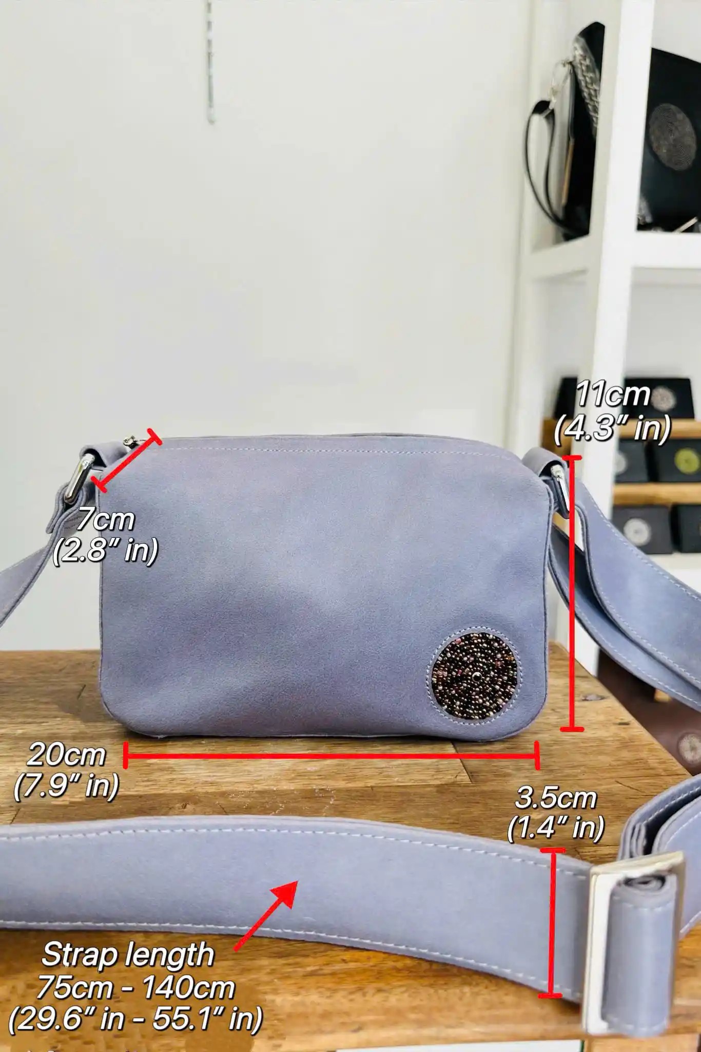 The Anthea Purse is perfect for those who like things light, simple and feel comfortable with a long strap. The structure of the Anthea Purse keeps perfectly upright when not being worn and allows you to put it down and find your personal belongings in an instant.Other featuring details includes a waterproof lining in a contrasting colour to make finding one’s belongings easy, an inside zip pocket to keep the smaller things at close reach.STRAP DIMENSION