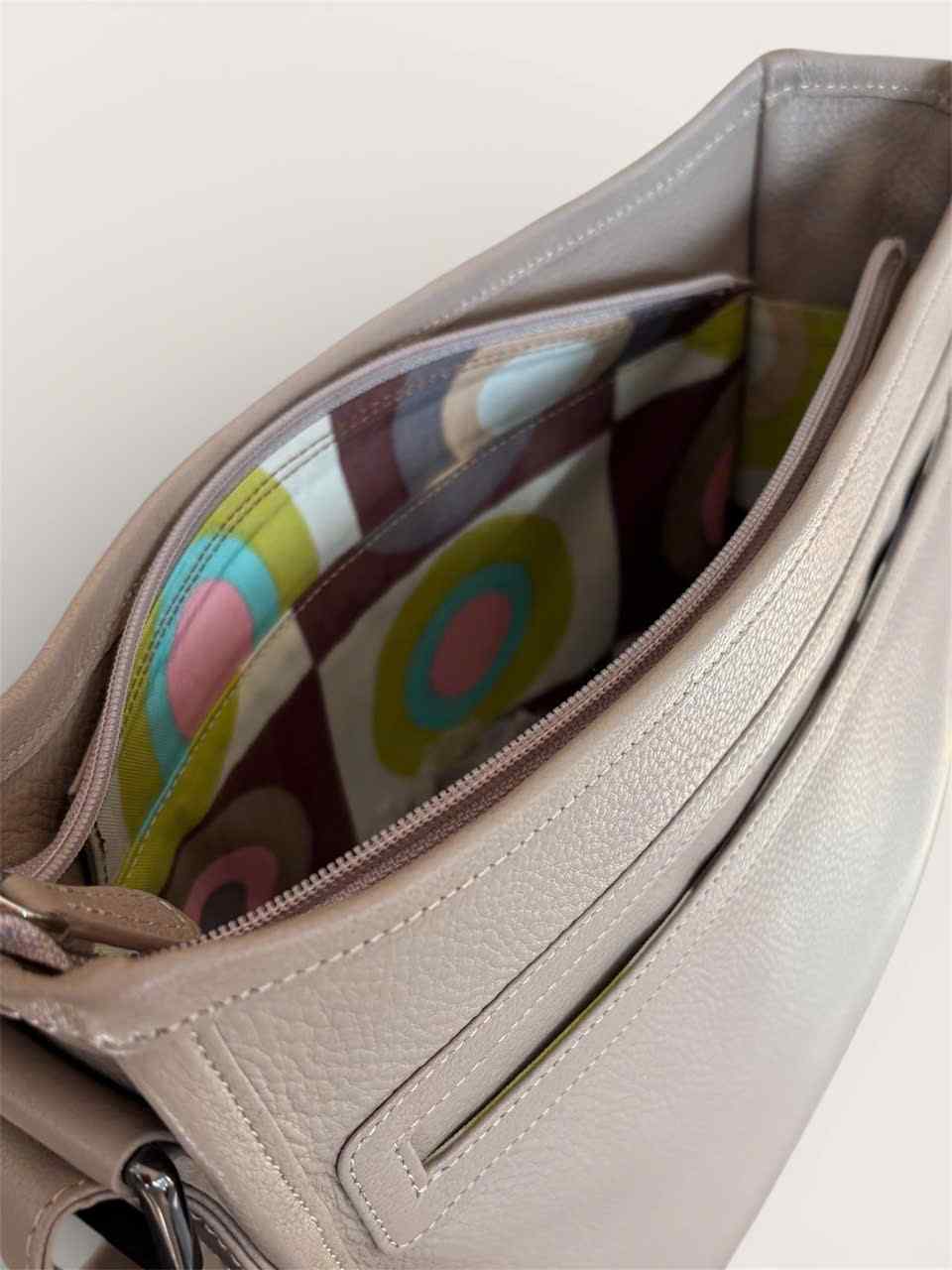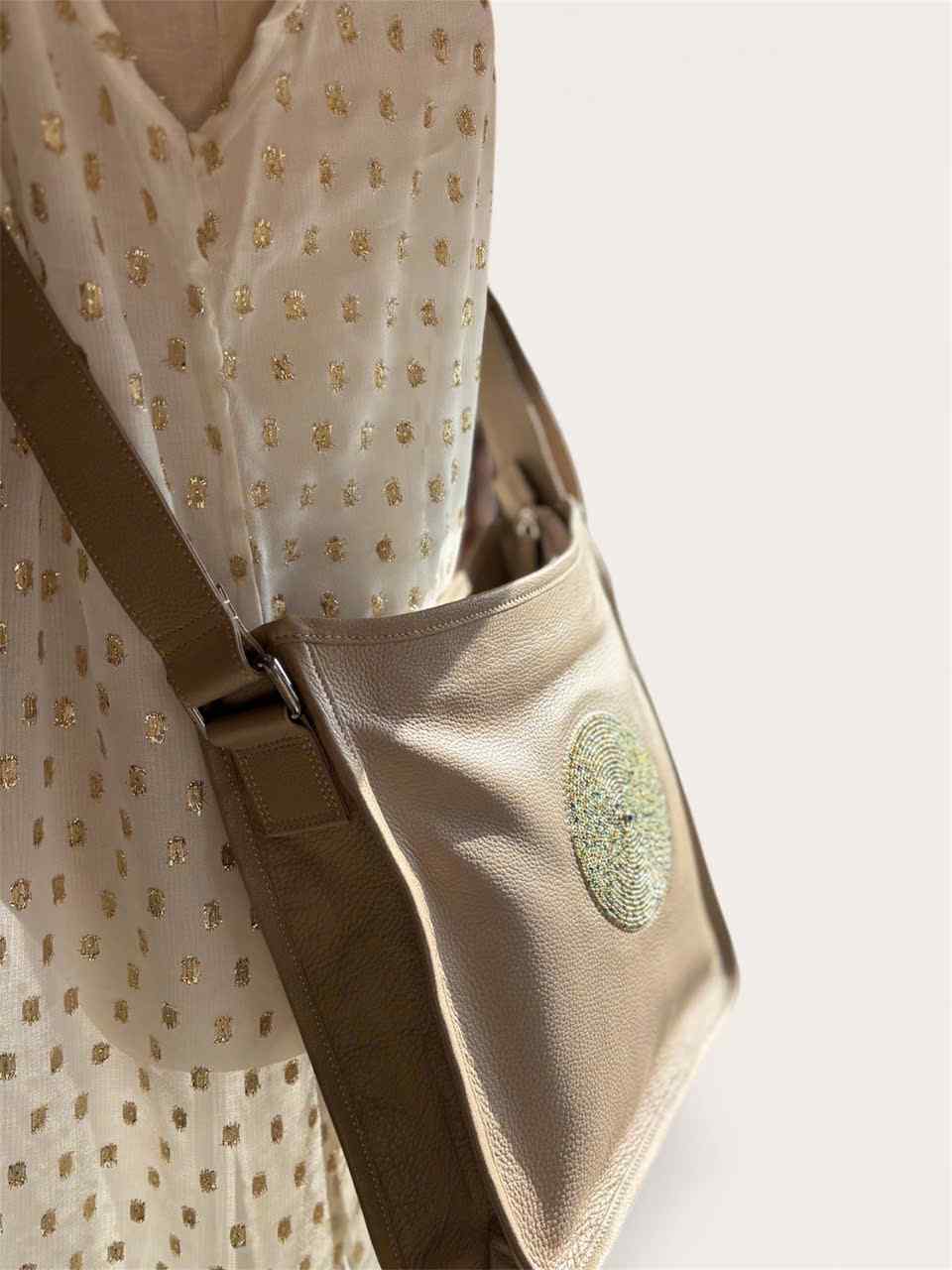 The Marina Bag Silver duo strap is a spacious bag devoted to comfort without compromise, this piece can libertate not only the hands, but also harmoniously follows every movement made by the body.The structure of the Marina Duo Straps keeps perfectly upright when not being worn and allows you to put it down and find your personal belongings in an instant.Other featuring details includes an inside pocket to keep the smaller things at close reach, a lining in a contrasting colour to make finding one’s belongings easy, a smart interchangeable strap which can change the style from casual to formal to dressed up, aswell as a zip closure on the outside of the bag.Interchangeable Strap DimensionsLeather Strap:Length: Adjustable from 87 cm – 152 cm (34.3" – 59.8")Width: 3.5 cm (1.4")Note: The stated “strap dimension” refers to the maximum length.Metallic Chain Strap:Length: 65 cm (25.6")Width: 3.5 cm (1.4")