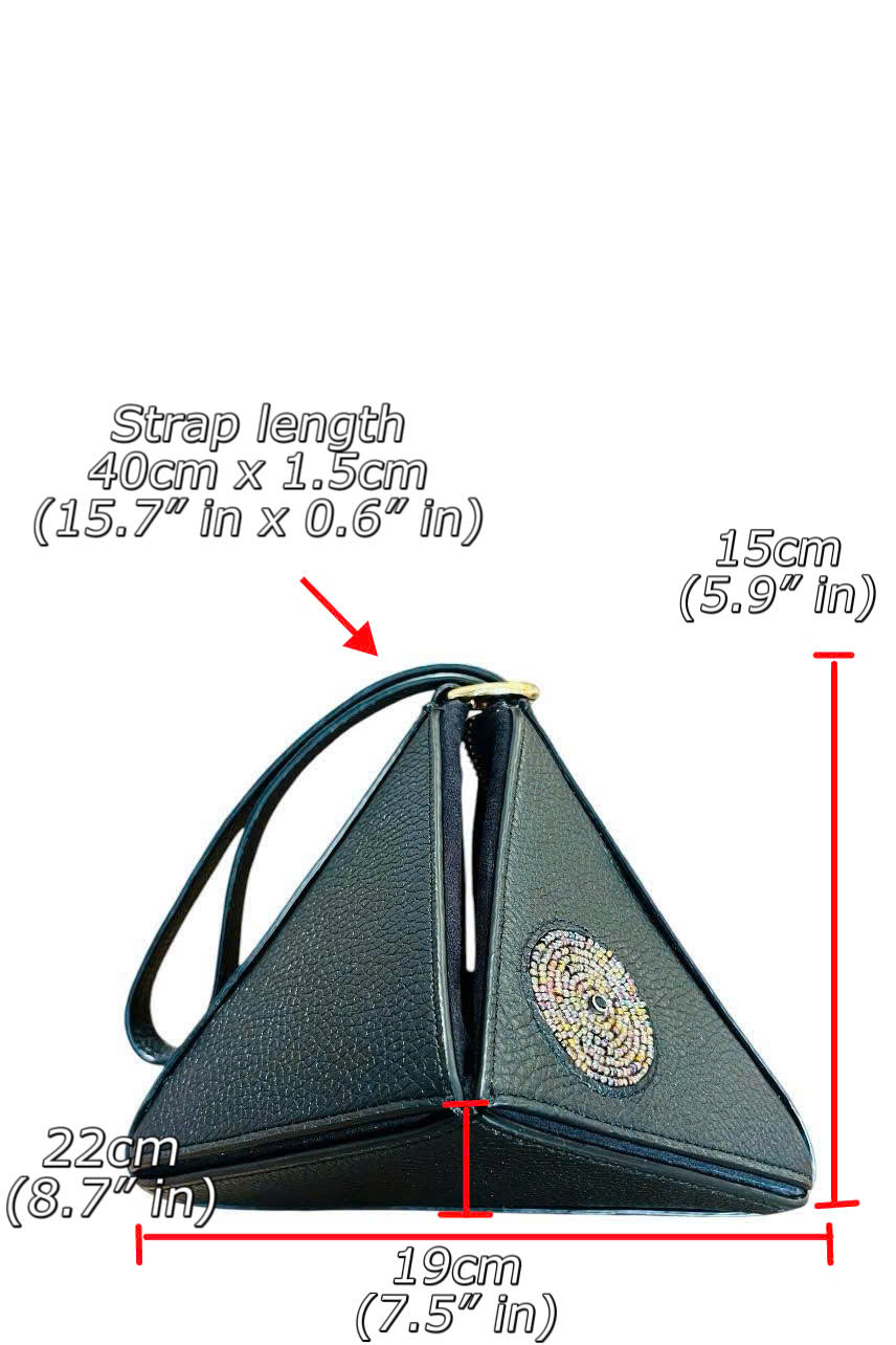 The Sarah Purse is a refined statement in versatility. Small and sculptural, it moves effortlessly through every season. Wear it rolled into a striking pyramid for a bold silhouette, or open it into a sleek square for a softer look.Created to be worn short or long, day or night, Sarah is an essential piece—quietly confident, endlessly wearable, and made to stand apartInterchangeable Strap DimensionsLeather Strap:Length: Adjustable from 40 cm to 113 cm / 15.7"in to 44.5"inWidth: 1.5 cm / 0.6"inNote: The stated “strap dimension” indicates the maximum length.